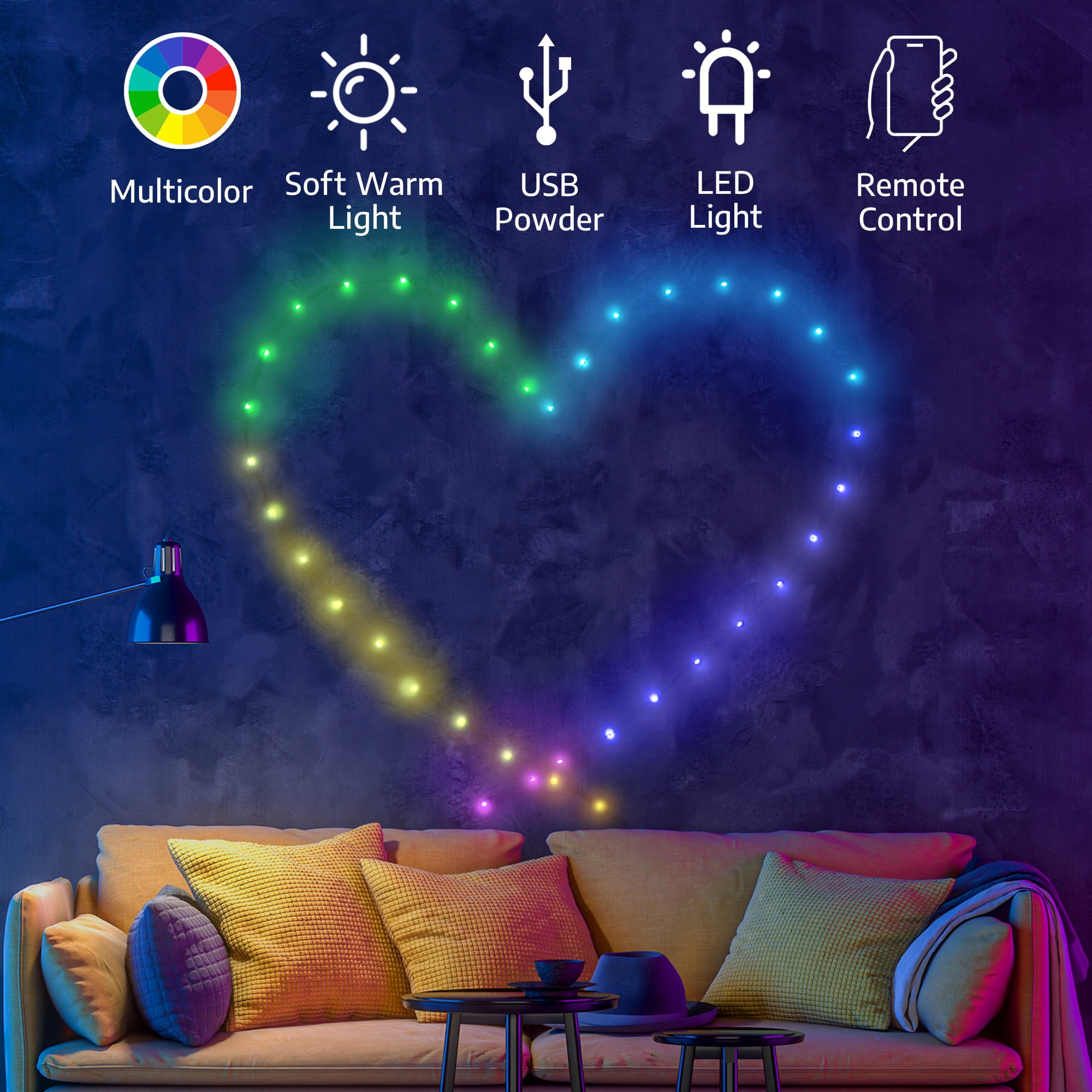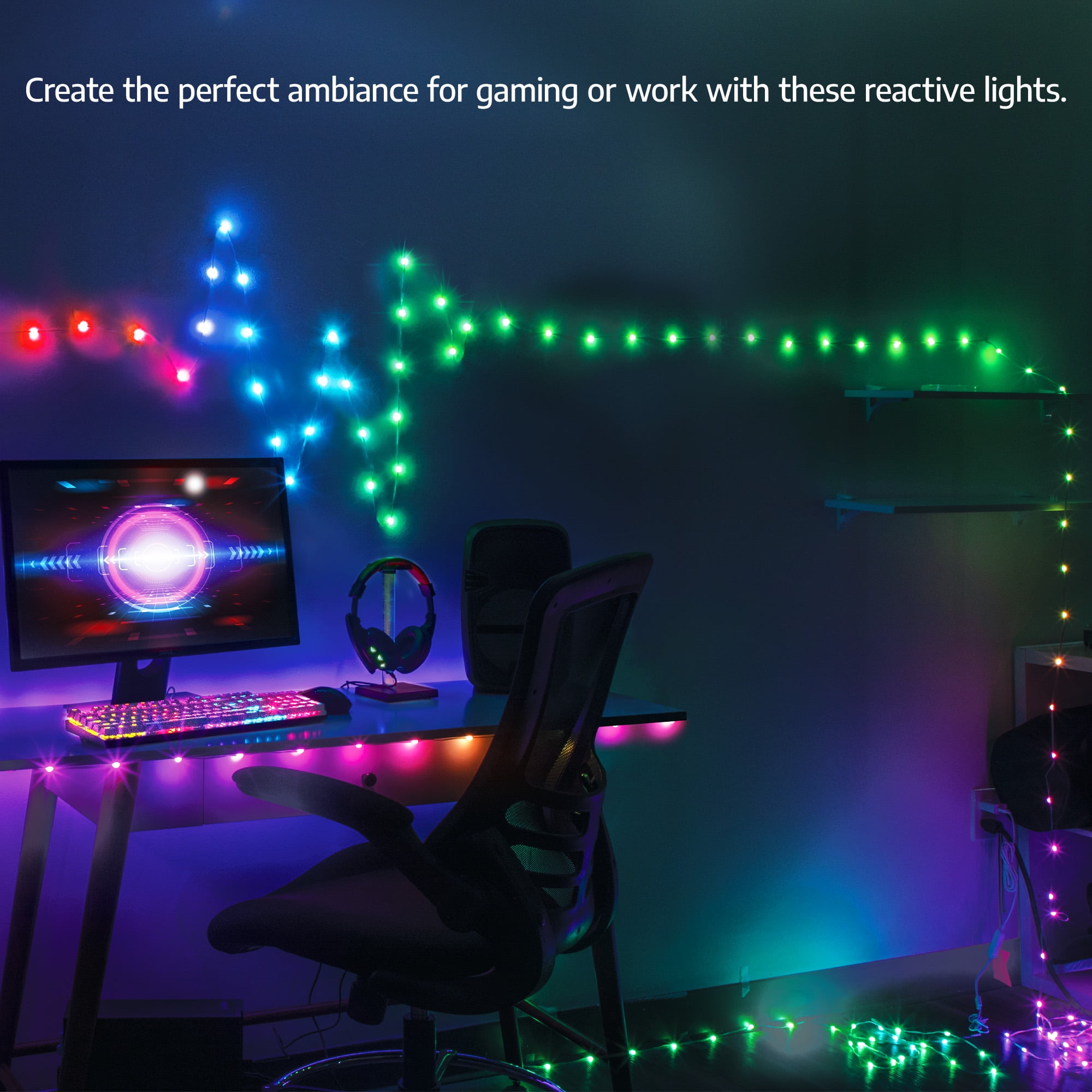 20ft of flexible RGBIC dot string lights for dynamic lighting displays Sound-reactive technology syncs lights to ambient music or sounds Perfect for home, party, wedding, ceremony, and show decorations USB powered for easy setup and placement indoors Fits modern and novelty home decor styles