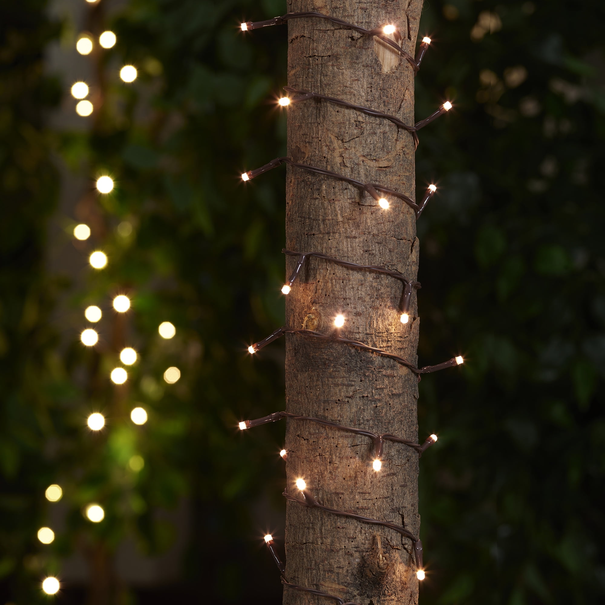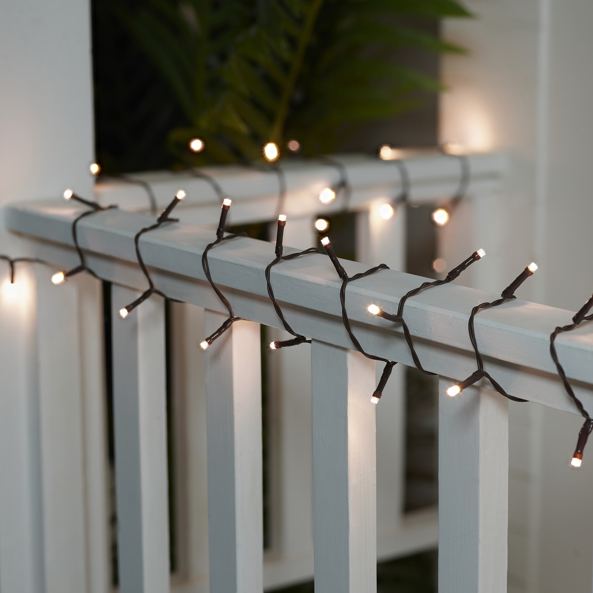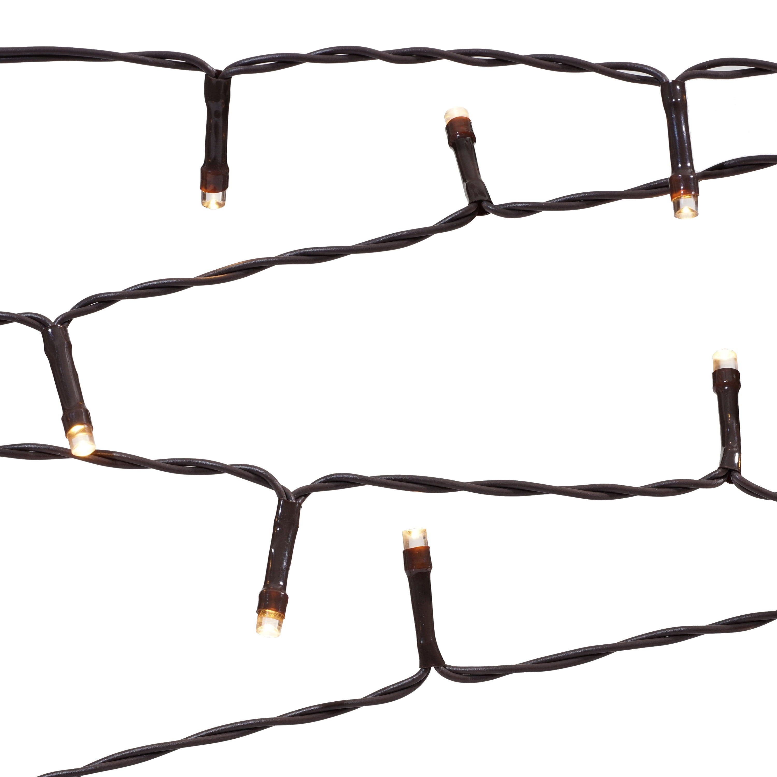 & Free ShippingMainstays Solar 50-count Warm White LED Mini String Lights on Brown Wire are designed to be functional and decorative. These warm white steady-burning LED lights are on brown wire to blend in with just about any dark-colored surface you attach them to. After the sun goes down, these mini solar-powered lights add the perfect amount of light long into the evening. These lights are ideal for patios and gardens to drape over shrubs and bushes. The lights will turn on automatically at dusk and glow continuously for up to 8 hours when fully charged. The set has an on/off switch and includes one 500 mA Ni-MH rechargeable battery along with a plastic stake for easy placement. With a lighted length of 12.5 ft. and a total length of 17.5 feet, this light set can light up all your outdoor parties and events. These solar-powered LED mini lights save energy and money as they light up with zero cost. Outdoor use only. 2700K warm white light.